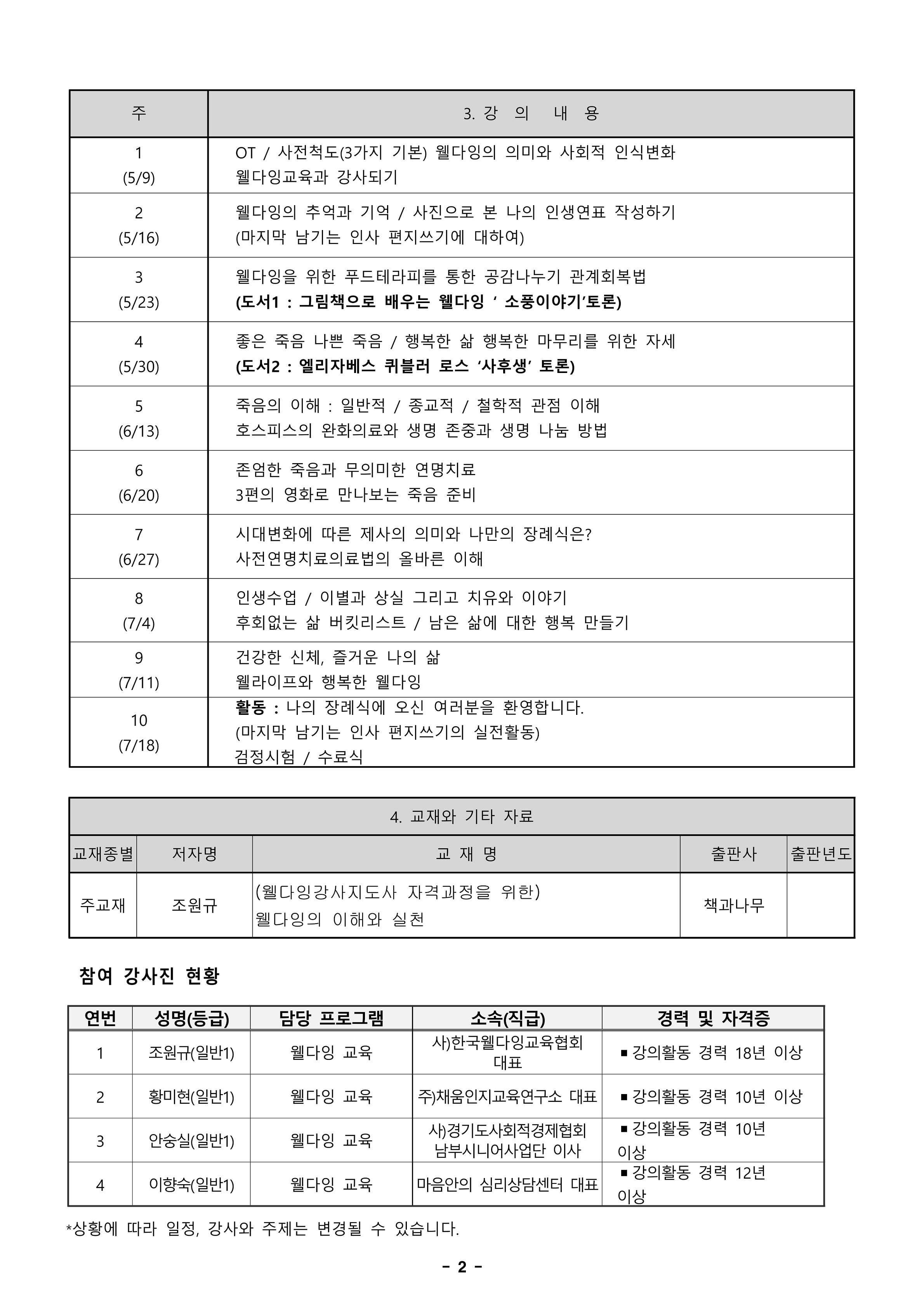 • 2급 교육과정 강의계획서