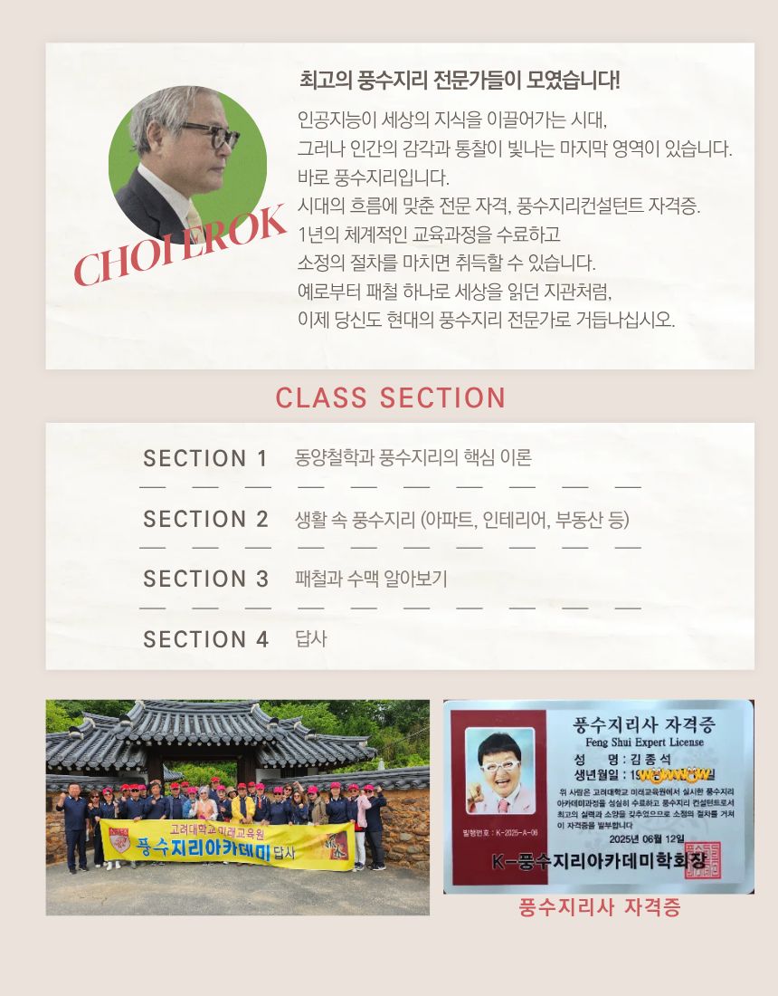 강의명 : 풍수지리아카데미(자격증과정)